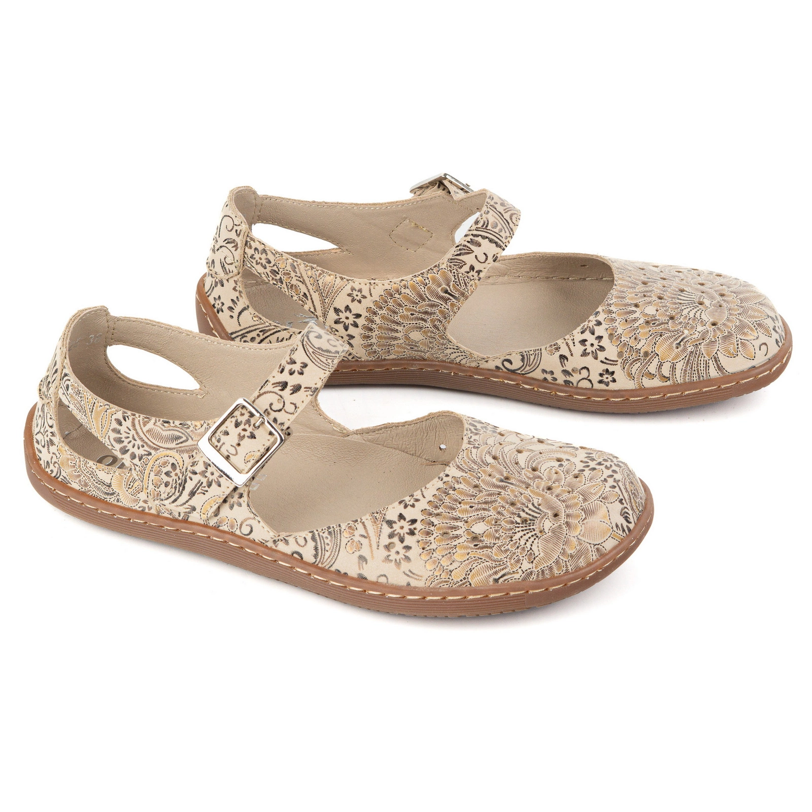 Damskie buty barefoot ze skóry naturalnej z printem 1284 beżowe